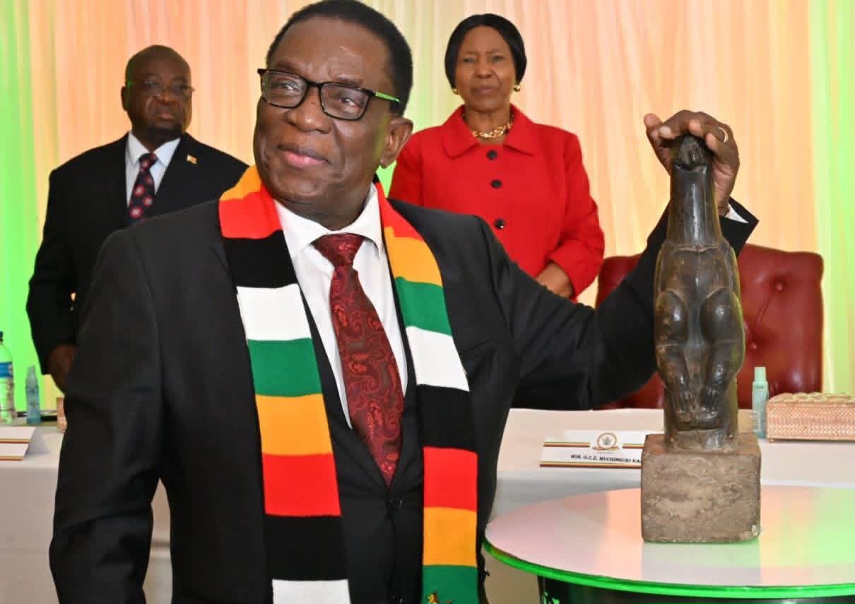 It is our esteemed privilege to welcome back the revered ancestral remains of our forebears, accompanied by the repatriated Zimbabwe Bird, a symbol of great national importance,” President Mnangagwa said.