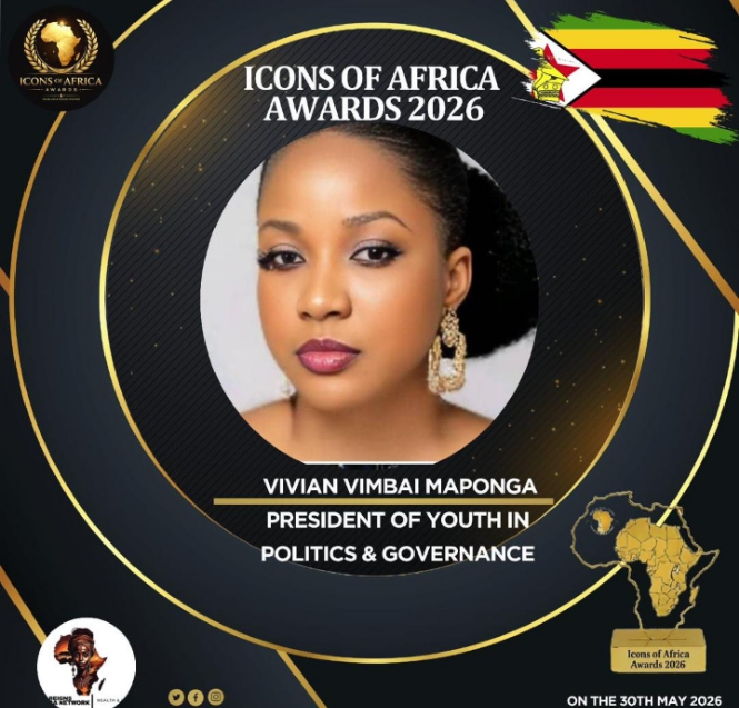 Cde Vivian Vimbai Maponga, a dynamic voice from Zimbabwe and President of Youth in Politics and Governance, is set to be honoured on May 30, 2026, at the prestigious Icons of Africa Awards in Sandton.
